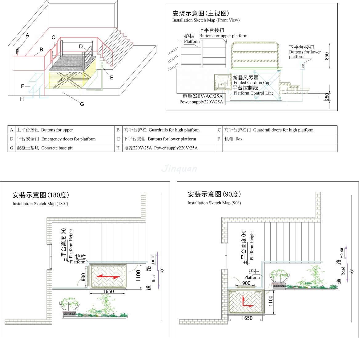 剪叉XI型無障礙升降平臺(tái)采用剪叉式升降機(jī)構(gòu),液壓驅(qū)動(dòng),升降平移安全,外部采用盲道式不銹鋼臺(tái)面和護(hù)欄,外型小巧美觀,安裝于設(shè)備配套機(jī)坑,平臺(tái)與路面齊平,不阻礙周邊環(huán)境。施工簡便,機(jī)坑加有排水井道不易積水,不易生銹,液壓動(dòng)力系統(tǒng),電控系統(tǒng)置于高平臺(tái)下部機(jī)箱,提高了設(shè)備的安全性及便于設(shè)備的維修保養(yǎng)。設(shè)備可配置折疊式防護(hù)罩。安全觸板等外圍安全防護(hù)設(shè)施,操作簡單安全性高等優(yōu)點(diǎn)。適用于大型新建住宅小區(qū),土地資源緊湊的公共設(shè)施改造項(xiàng)目等。